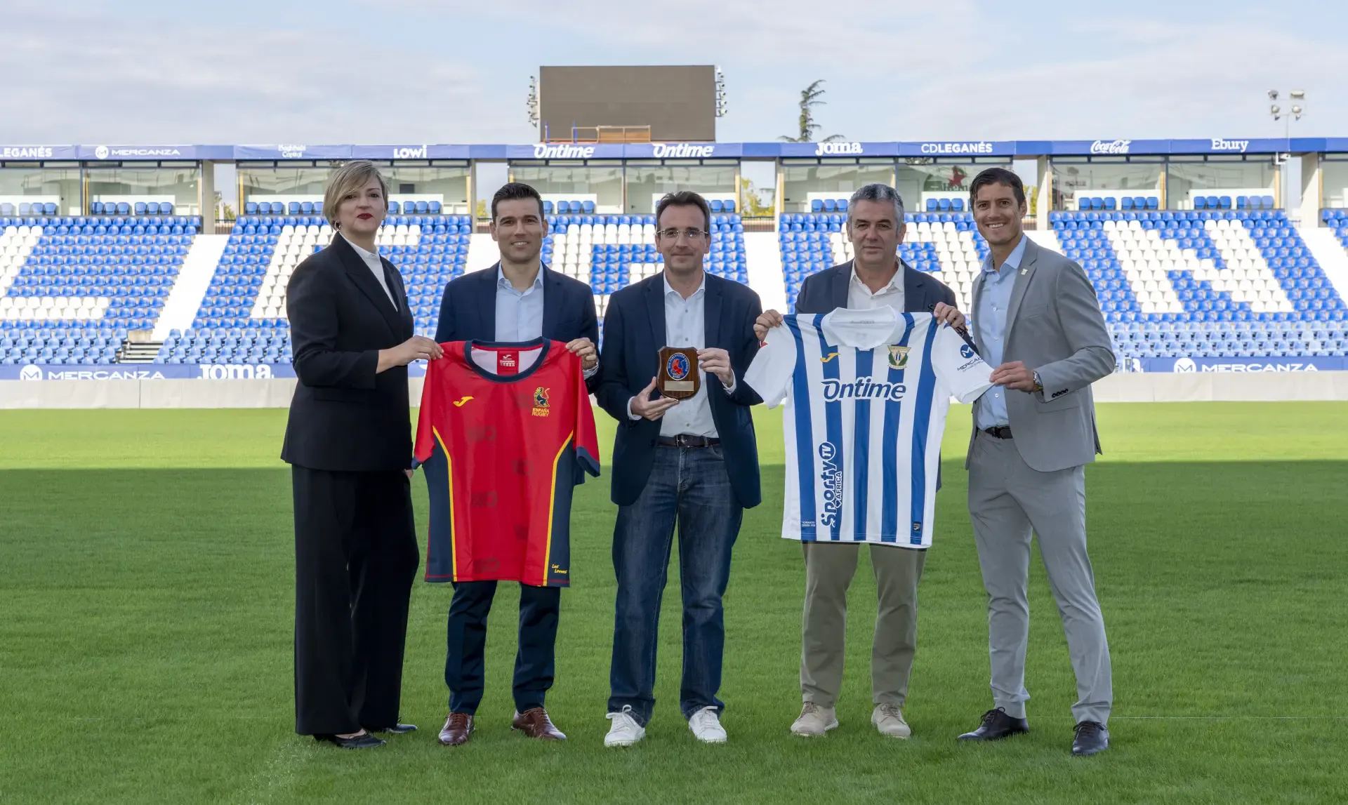 Martín Ortega wanted to begin by thanking "the mayor and the sports councilor, as well as the general director of the Spanish national rugby team. This is a very important day for us, in line with our goal of having our stadium host not only high-level soccer matches, but also other types of sporting and leisure events. We are very proud that the Ontime Butarque Stadium will host this match on November 8th, and it is a small, big step. We are trying to evolve and have a more comfortable stadium and give the residents of Leganés the opportunity to host other types of events."