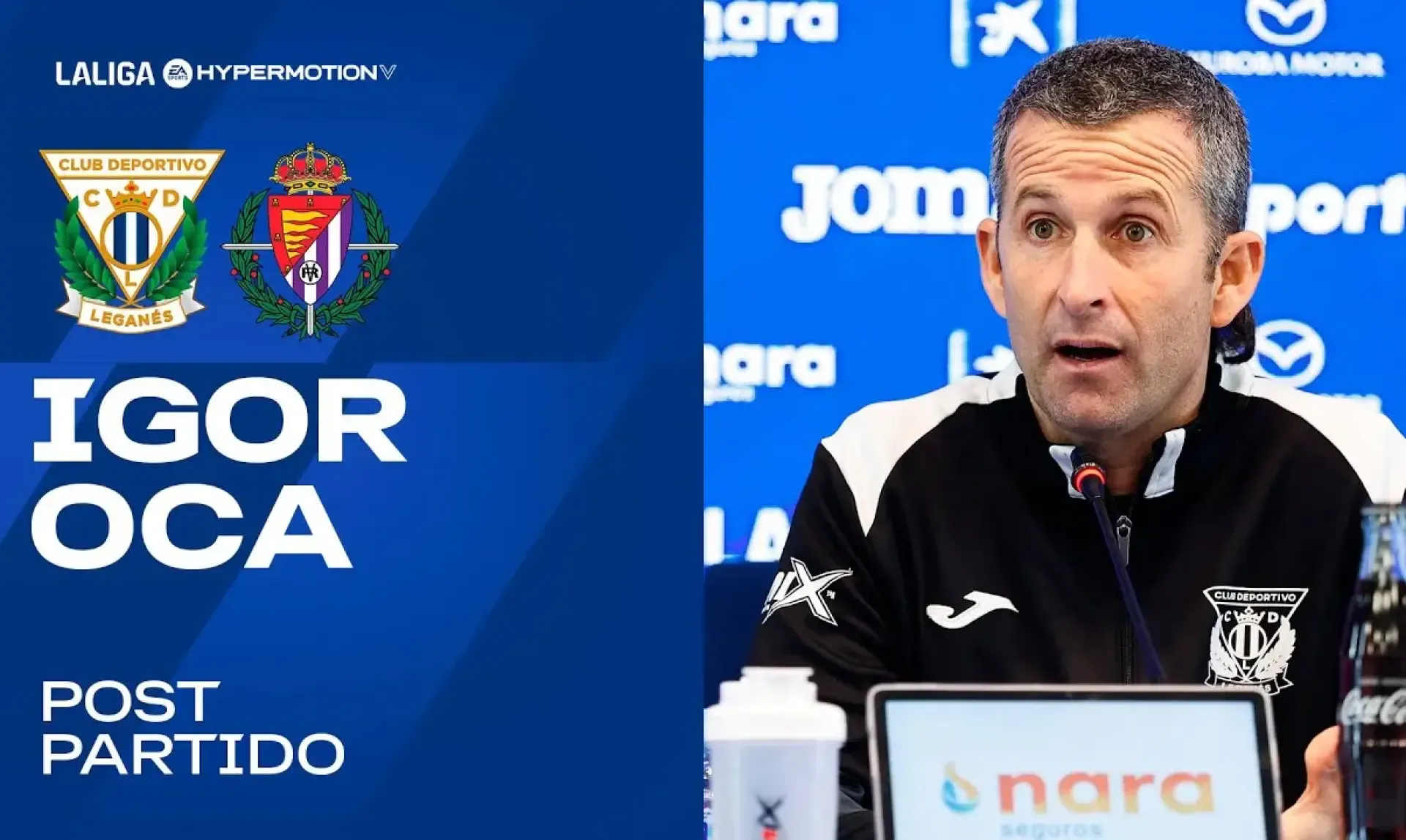 El entrenador del C.D. Leganés, Igor Oca, compareció este domingo en rueda de prensa al término del partido que el equipo pepinero disputó ante el Real Valladolid, correspondiente a la vigésimo primera jornada de LALIGA HYPERMOTION, que finalizó con triunfo por 3-0.